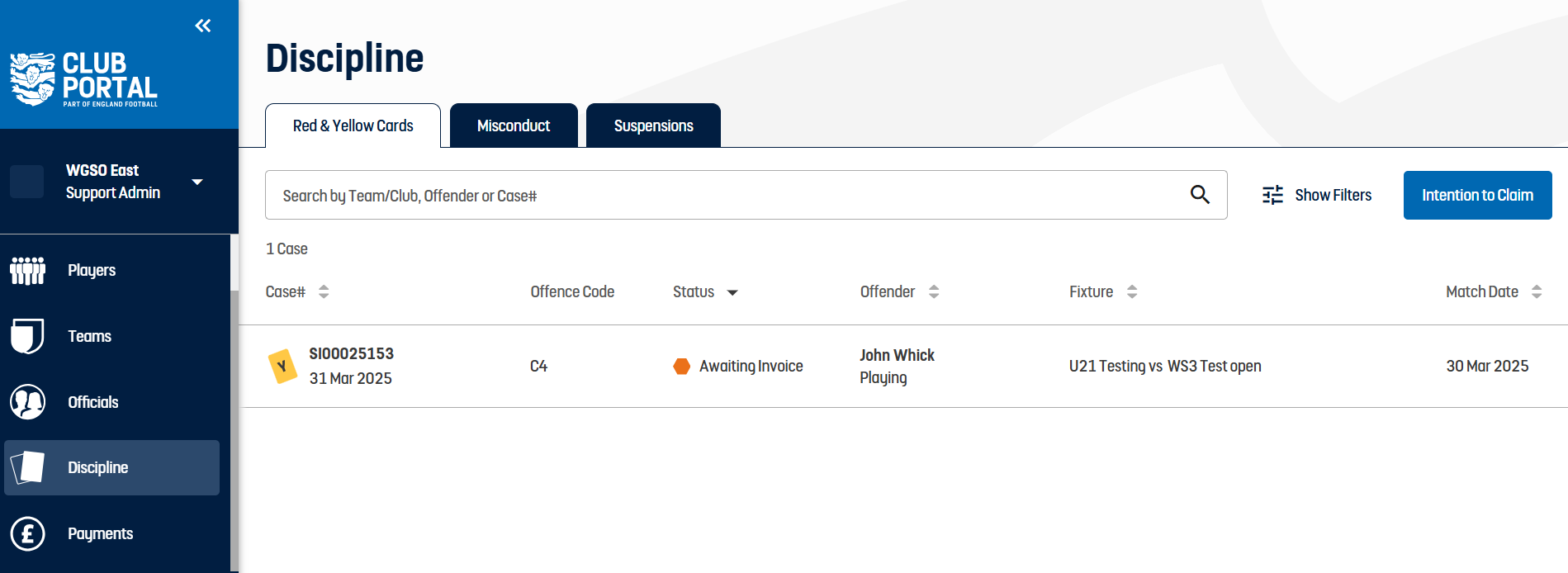 Please note, you will need a Club role on Club Portal in order to access Disciplinary data. Information on how to be added as a Discipline Officer is available here.